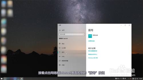 接着点击网络和internet界面左侧的“拨号”按钮。