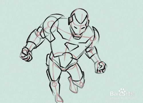 擦除不需要的线条,给外衣添加更具体的细节,并使他看上去更有机械感。