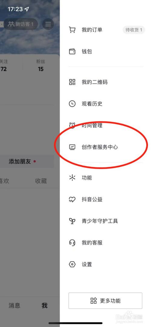 进入抖音我的页面,打开菜单后选择进入创作者服务中心;