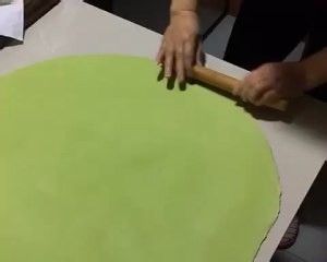 把面团擀成面皮,尽量薄一点.表面抹点生粉或地瓜粉(防止粘黏).