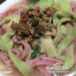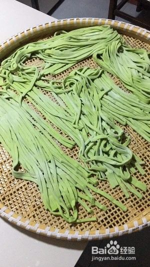 芹菜汁和面,记得面要硬一点.不然切出来的面会没有嚼劲,根据个人口感.