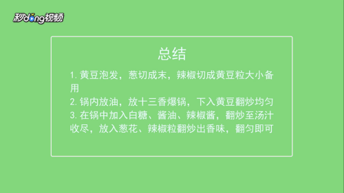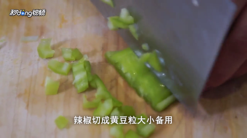 黄豆泡发,葱切成末,辣椒切成黄豆粒大小备用。