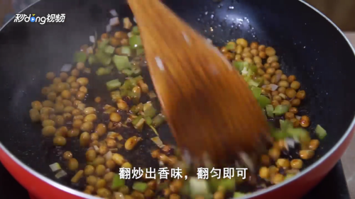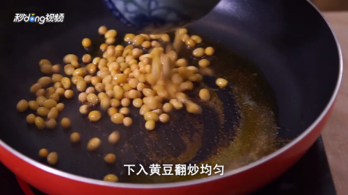 锅内放油,放十三香爆锅,下入黄豆翻炒均匀。
