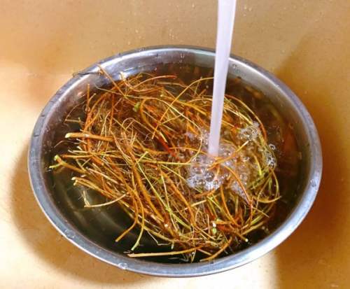 2鸡骨草浸泡30分钟后,充分冲洗干净备用。