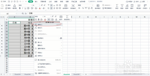 在另一个excel表中单击鼠标右键选择粘贴,即可将汇总表粘贴过来。