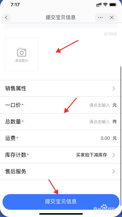 填写发布商品信息和价格后,再点击“提交宝贝信息”。