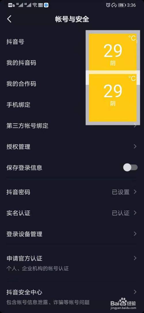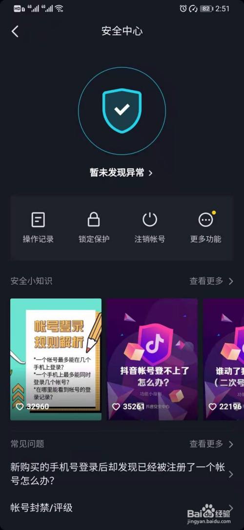 进入到账号与安全后,点击最底部的“抖音安全中心”进入下一步。