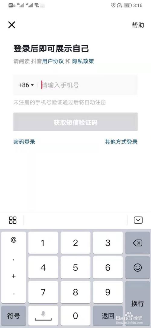点击抖音进入界面,点击底部“我”的菜单,输入手机号和验证码,就可以重新注册抖音号。