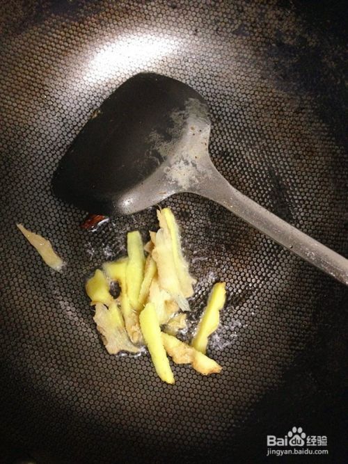 炒锅洗净,放入少许食用油,油温热时,放入姜片炒香。