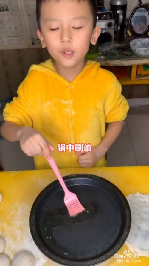 锅中刷油,放入面饼;