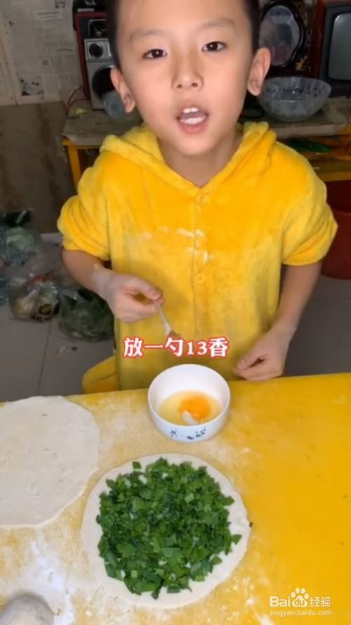 放入韭菜碎;