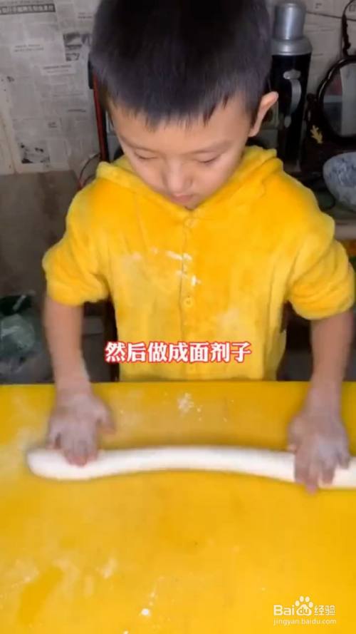 面粉揉成光滑的面团;