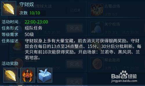 每天10次守财,有机率掉鬼装,还有少量银子奖励