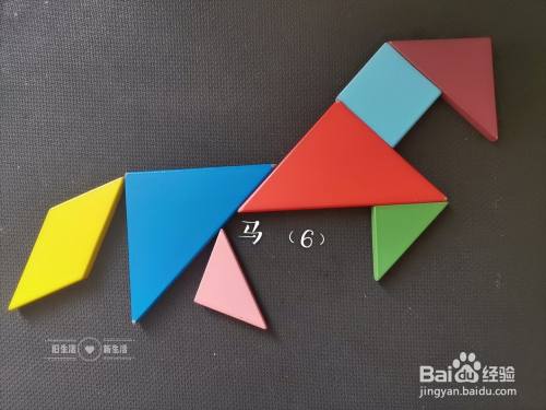最后我们把黄色平行四边形摆好,一匹马就拼好了。