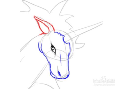 在头上画出独角兽的鬃毛。