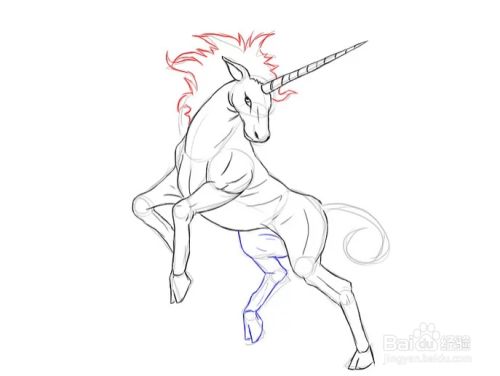画出独角兽的身体。多加几笔,让独角兽的肌肉凸显出来。