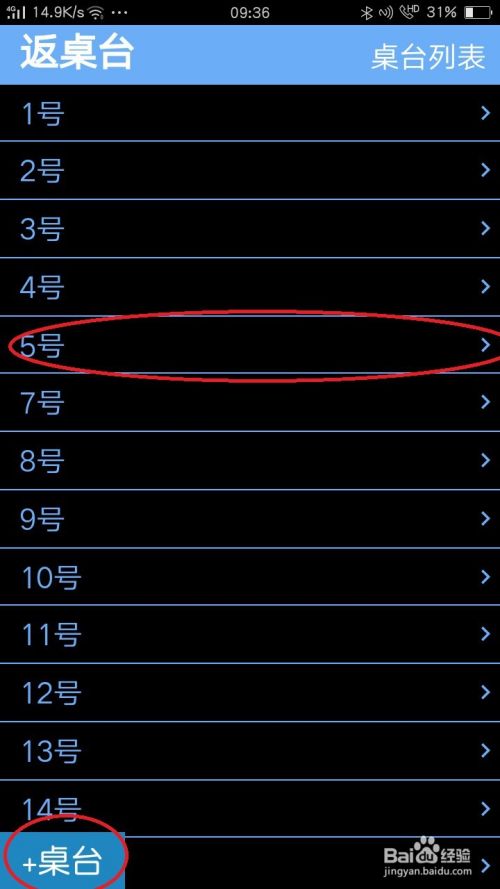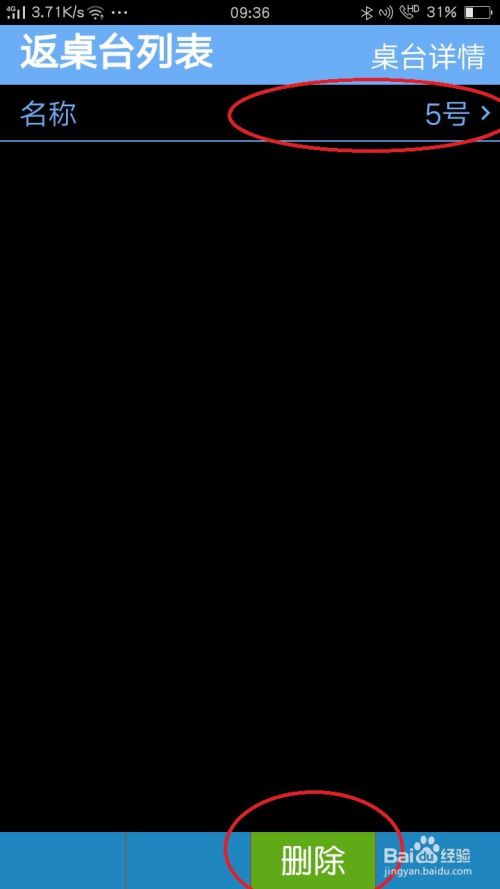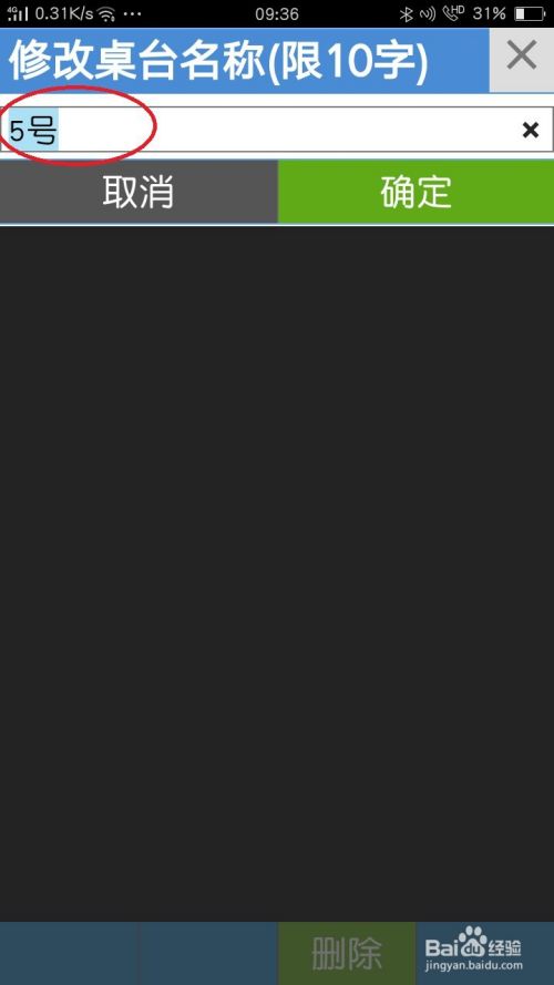 点击一桌台,例如“5号”,进入下一页修改名称或删除。