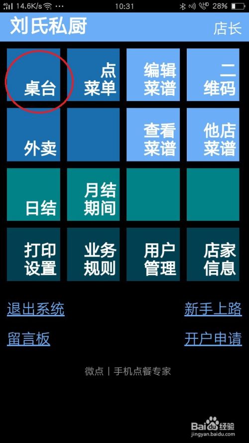 在登录后的首页,点击“桌台”。如果要返回前一页,请点击左上“返回”或点击系统返回按钮。以下同。