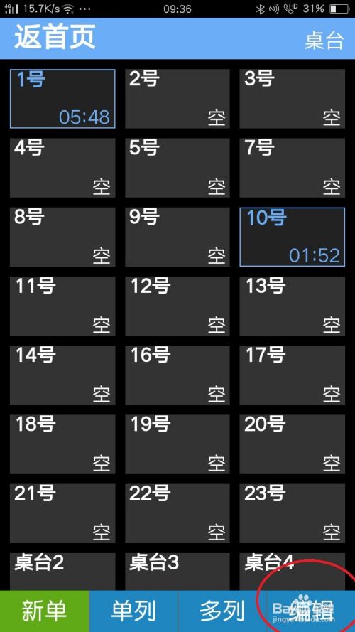 在桌台页,点击右下“编辑”