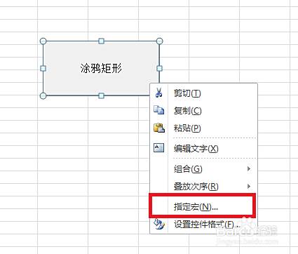 7.将按钮控件命名为“涂鸦矩形”,然后点击右键,选择“指定宏”选项。