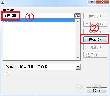 4.写上VBA代码的名称,然后点击“创建”按钮。