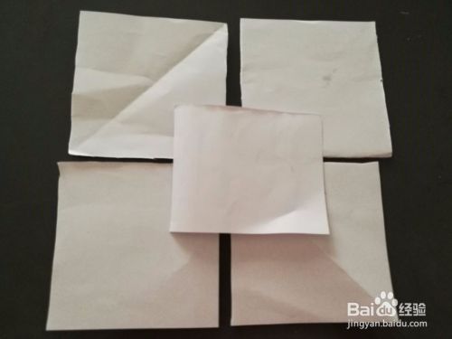 再用胶水把两边固定住,如图所示,另外用三张纸都折叠成这个样子。