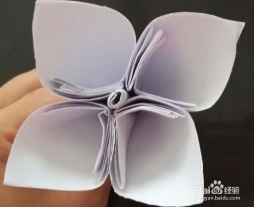 然后把4个花瓣用胶水固定住,中间用这个棒棒固定住,漂亮的花朵就折叠好了。