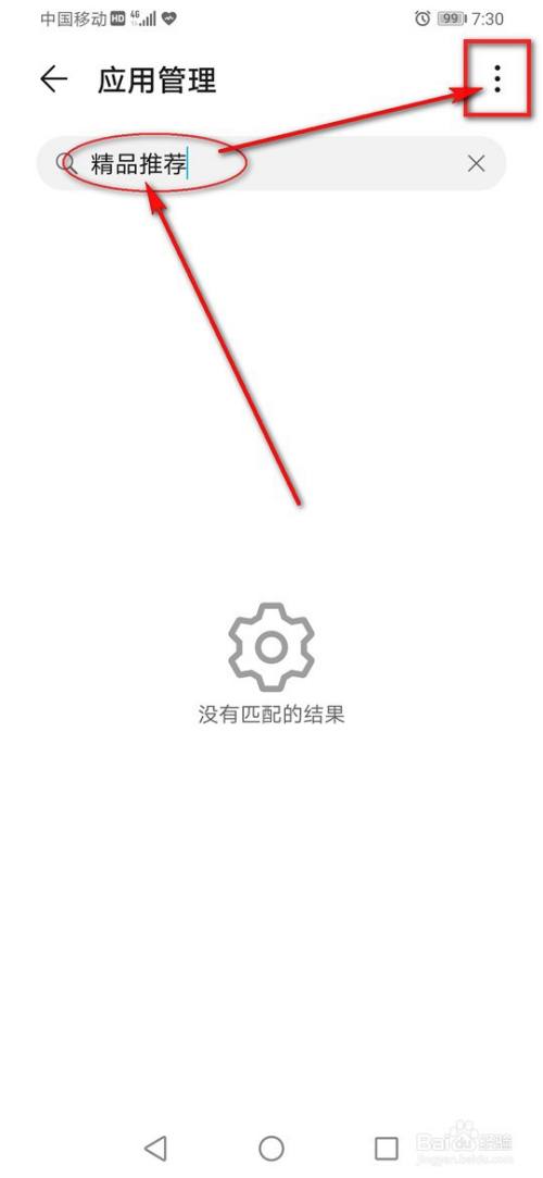 搜索框输入“精品推荐”,点击右上角的“┆”图标。