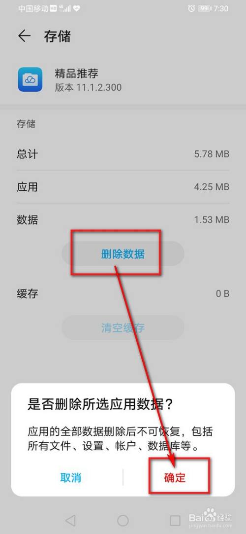 点击“清空缓存”及“删除数据”。