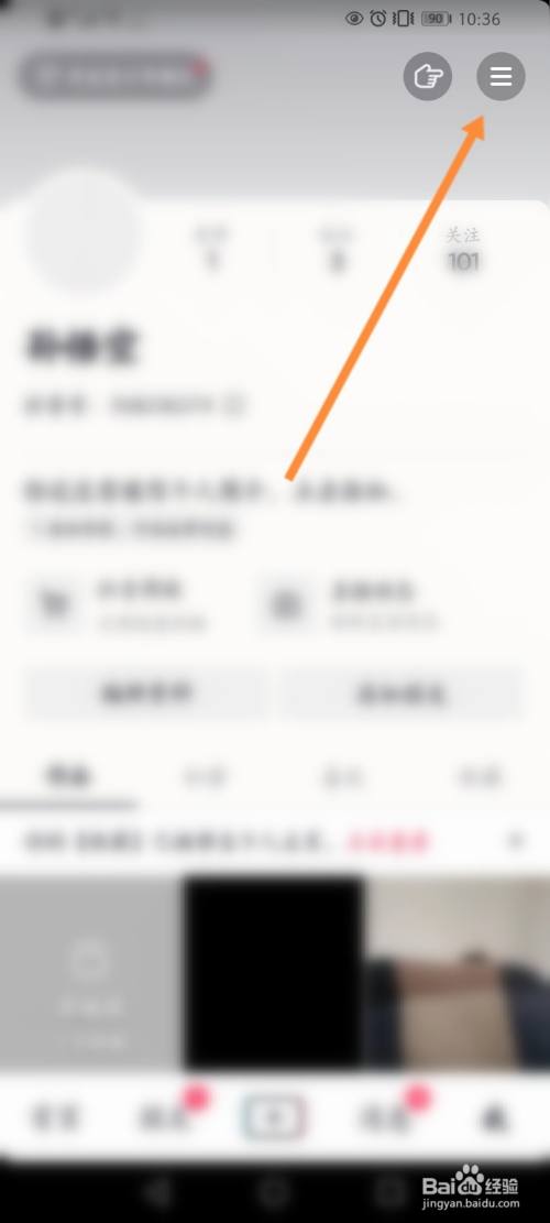 进入抖音我的界面,点击三横图标。