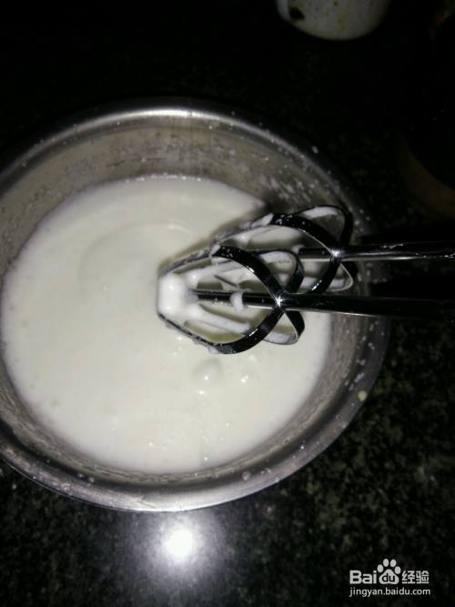 蛋黄加牛奶搅拌均匀加食用油,可以用打蛋器但不要时间过长容易打发