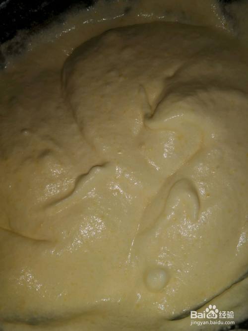 把面粉筛入打好的蛋黄中翻拌,分三次加入奶油即可,如下图