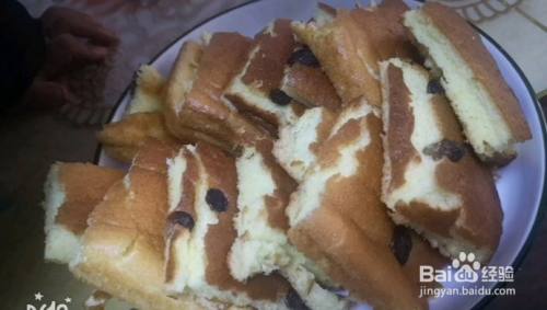 此时烤箱预热170度五分钟,把烤盘底部刷油,放油纸也可 大力震几下排出空气,看起来平整,我是在这是放了葡萄干 随意。170度打给我25分钟,如担心中间夹生可转100度再烤五分钟