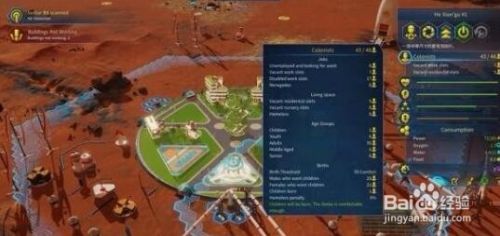 单击有了殖民者入住的穹顶后,建筑信息内会出现殖民者的整体健康、理智、宜居度、士气数值。