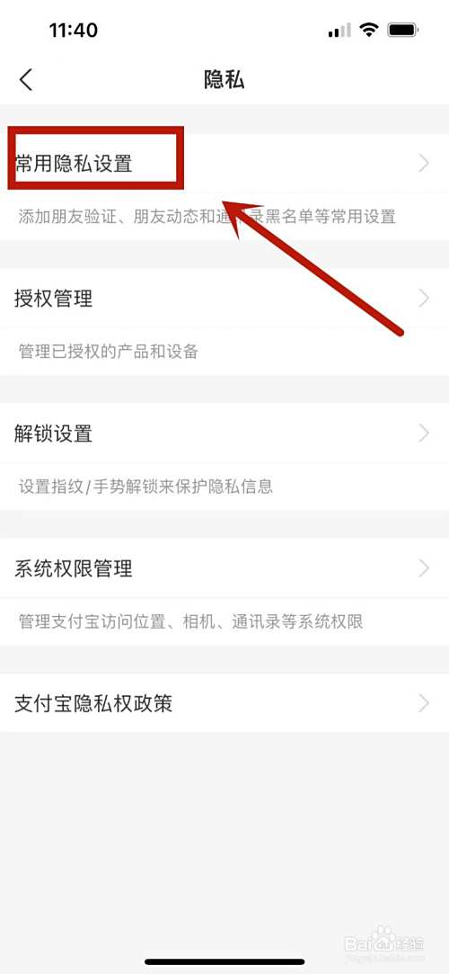 找到页牺恩面第一栏的常用隐私酱宋设置选项。