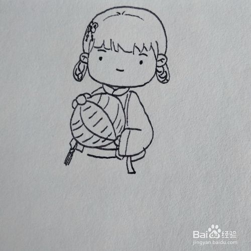 接着画出美女的一只汉服的袖子和手里的灯笼