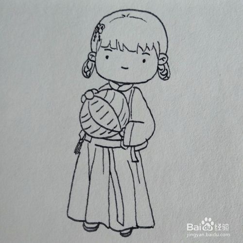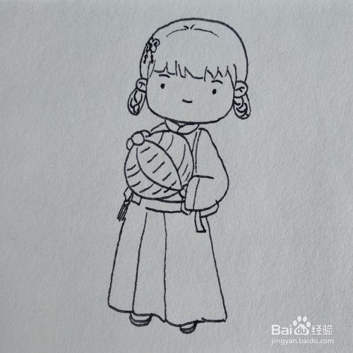 如何画一个抱着灯笼的汉服古代美女简笔画