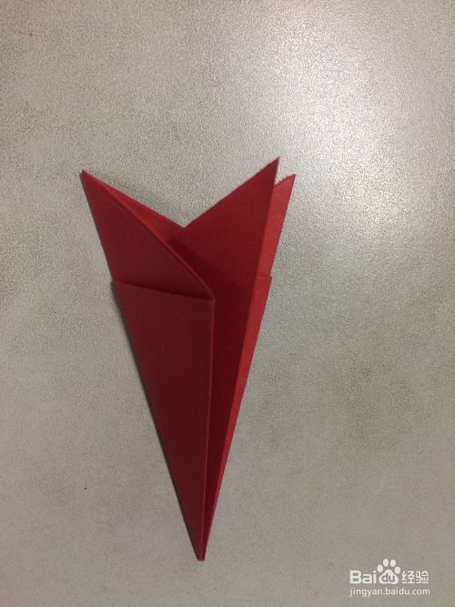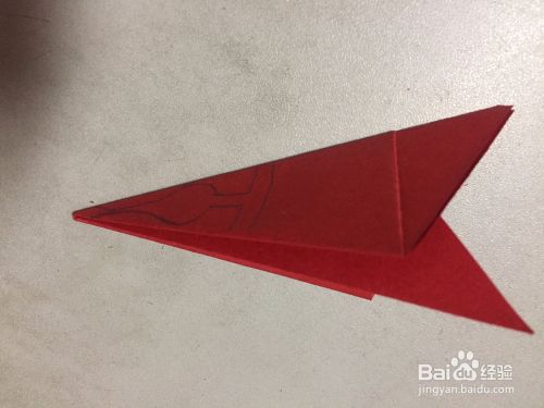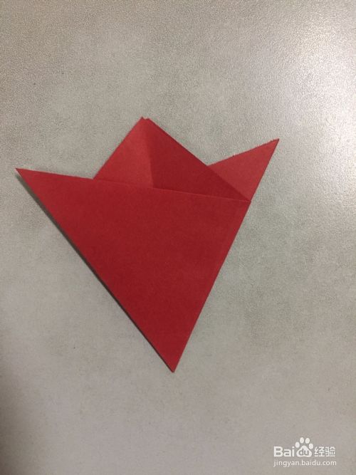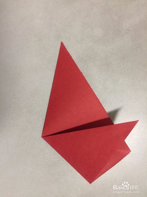 然后我们把下面的角向后向上折叠起来,同样越过右侧的尖角,然后我们把折好的纸翻转一下