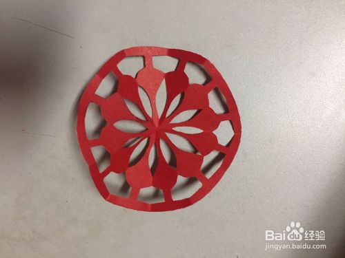 最后我们把彩纸打开,我们的车轮窗花剪纸就做好了,是不是很喜庆呢。