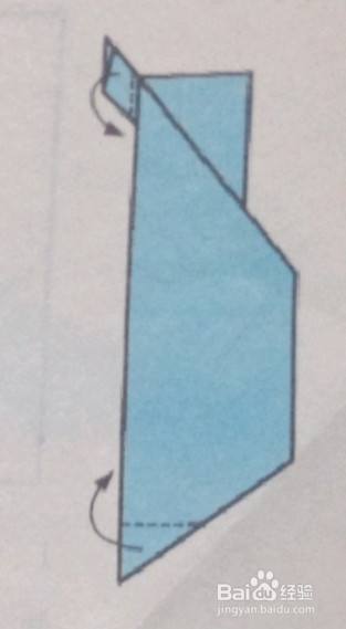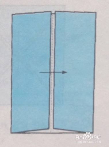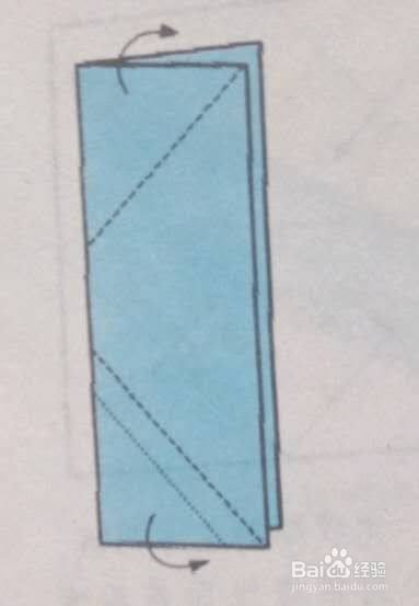 长方形的短边沿长边对折,一边折出两个角,另一边反向再折一次。
