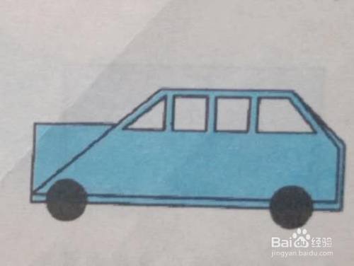 用画笔画出小轿车的窗户,并把小圆形贴在车上,小轿车就做好了。