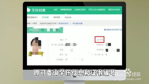 进入“学历信息”后,即可查询学历信息和证书编号。