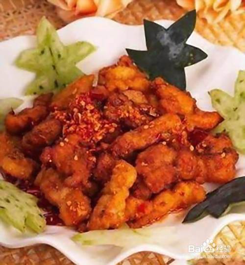 不过再用点底油,下切成小段的海椒炸干,在入锅翻炒下就是蜀香酥肉了。