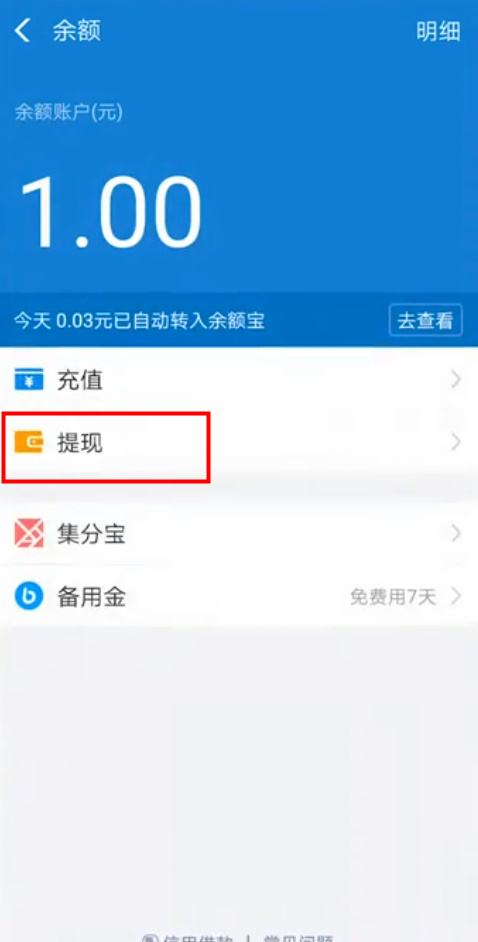 点击“提现”。