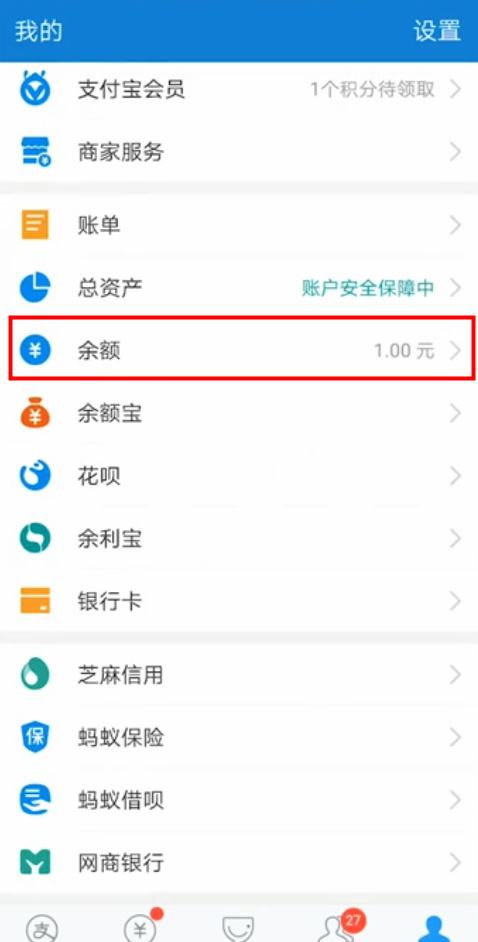 点击“余额”。