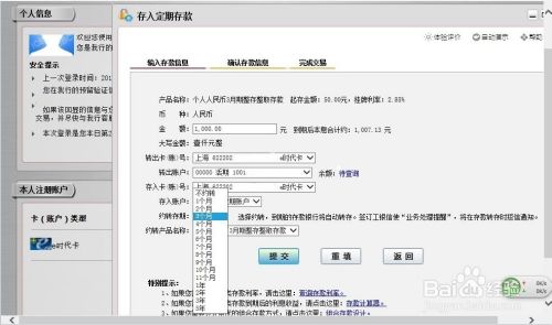 弹出菜单栏,选择定期存款-存入定期存款。