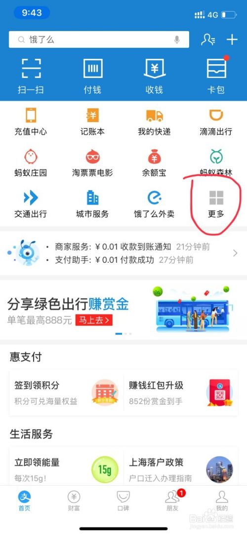 在手机上下载支付宝客户端,然后打开软件登陆账户,在首页面中点击更多应用。