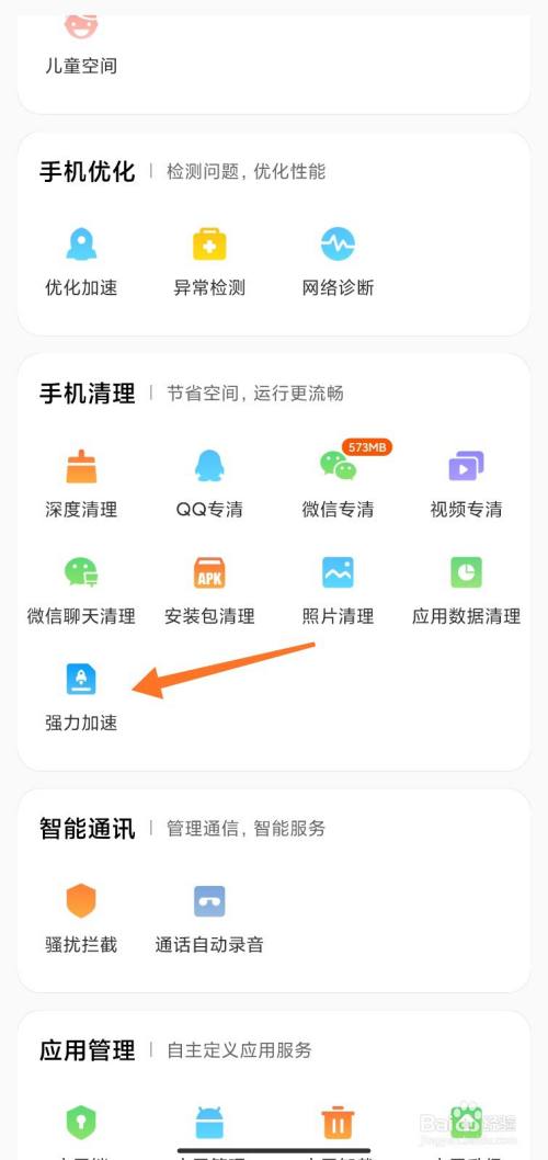 手机长期使用后会产生碎片,并可能因此造成手机顿。"强力加速”功能将在您不使用手机时执行硬件的碎片整理,帮您提升手机流畅度。