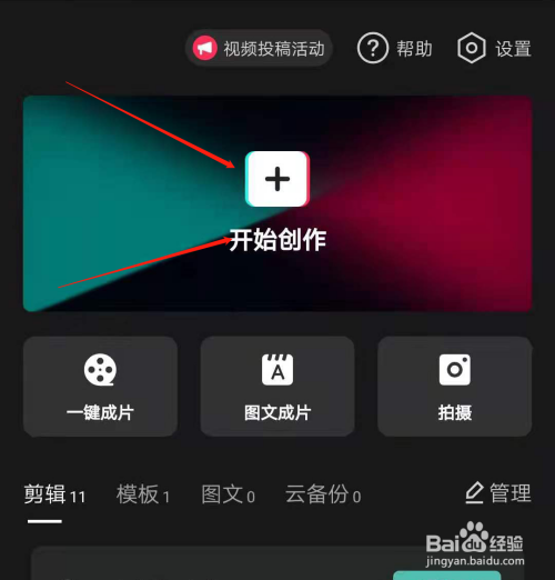 打开之后点击“开始创作”后选择要剪辑的视频进行导入