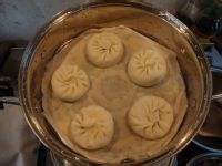 蒸的过程中不要掀锅盖,关火后也不要立刻掀锅盖,再焖至5分钟后再打开锅盖。(不然包子会塌下去的、起不来、看着扁扁的)